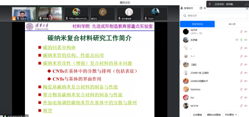 6月1日下午3时,公司beats365中文官网特邀清华大学朱跃峰给2021级和2022级材料科学与工程专业的全体同学及做了线上报告《碳纳米复合材料研究工作简介》,相关专业的部分教师也参与了会议。