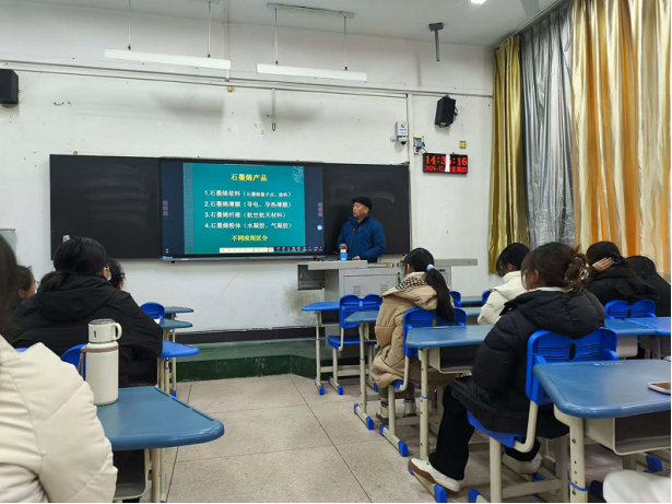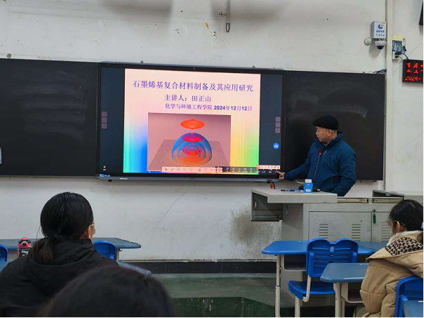 12月12日下午,beats365中文官网田正山博士在4101教室为公司2024级化学1班同学作《石墨烯基复合材料制备及其应用研究》的学术报告。