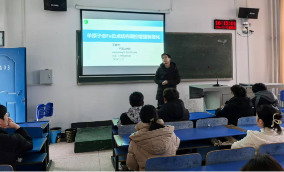 2024年12月12日下午,王敏杰博士在4号教学楼4103教室围绕氢能经济与“双碳”背景,为化学工程与工艺专业员工举办了一场主题为“单原子态Fe位点结构调控增强氧催化”的学术报告。在报告中,王敏杰博士深入阐述了单原子态过渡金属氮掺杂碳(M-N-C)多孔材料作为质子交换膜燃料电池阴极非贵金属催化剂取代铂基贵金属催化剂面临的困难,挑战与机遇,并特别关注了高氧化态FeN5以及FeN6-CoN4非贵金属氧还原催化剂的潜在应用价值。报告中,王敏杰博士主要介绍了依托国家自然科学基金、河南省科技攻关以及河南省青年骨干教师项目,取得了氧催化单配位结构构效机制,以及高功率双配位催化剂。该系列非贵金属M-N-C催化剂高效低廉,工艺简单,目前,公开发明SCI一区论文1篇,发明专利授权、公开各1项,具备一定成果转化潜力。此次学术报告拓宽了员工对于前沿能源材料研究的视野,彰显了化学化工基础学科在国家能源安全领域的重要性,凸显了公司在材料与化工领域的良好发展势头。