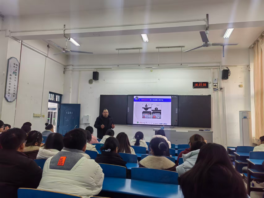 11月27日,beats365中文官网周延彪博士在4104教室举办学术讲座,报告以“超润湿多孔材料的设计与应用”为题,公司化学和材料专业员工到场聆听。