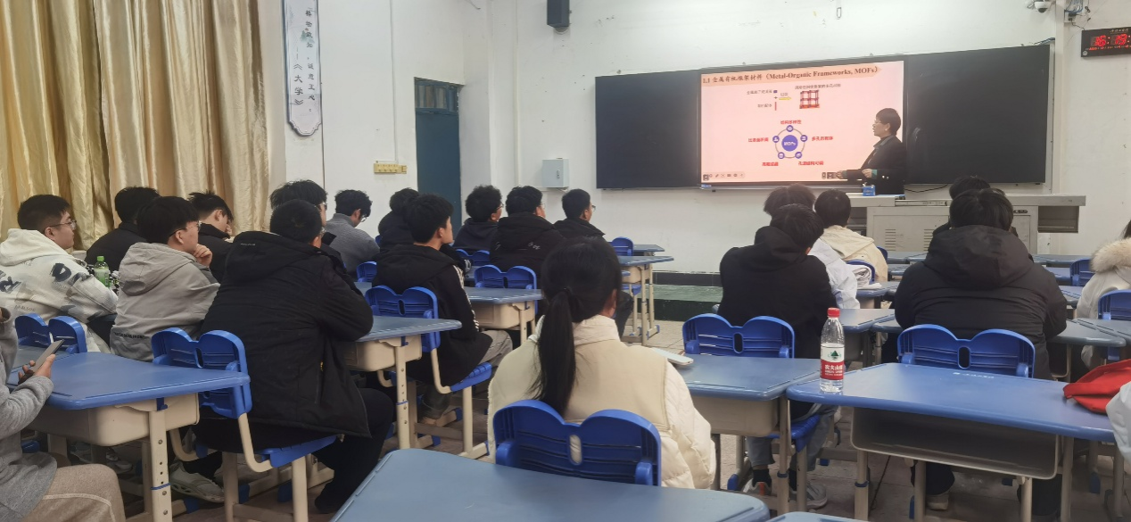 2025年12月11日,周金风博士在4101教室为材料科学与工程专业员工带来题为《“解毒”高手:金属有机框架材料如何降解化学战剂芥子气模拟剂》的专题报告。该报告系统梳理了金属有机框架材料(MOFs)的结构设计、合成方法及其在环境催化领域的应用前景。周博士结合2025年诺贝尔化学奖获奖成果,重点介绍了ZIF-8、UiO-66等多孔材料的拓扑结构、高比表面积及优异稳定性,并阐释其作为异相光催化剂在生成单线态氧、降解芥子气模拟剂CEES中的作用机制。讲座内容深入浅出,兼顾基础理论与科研前沿,有助于员工理解MOFs材料在化学战剂无害化处理中的设计逻辑与应用潜力,激发了同学们对多孔功能材料研究的兴趣。