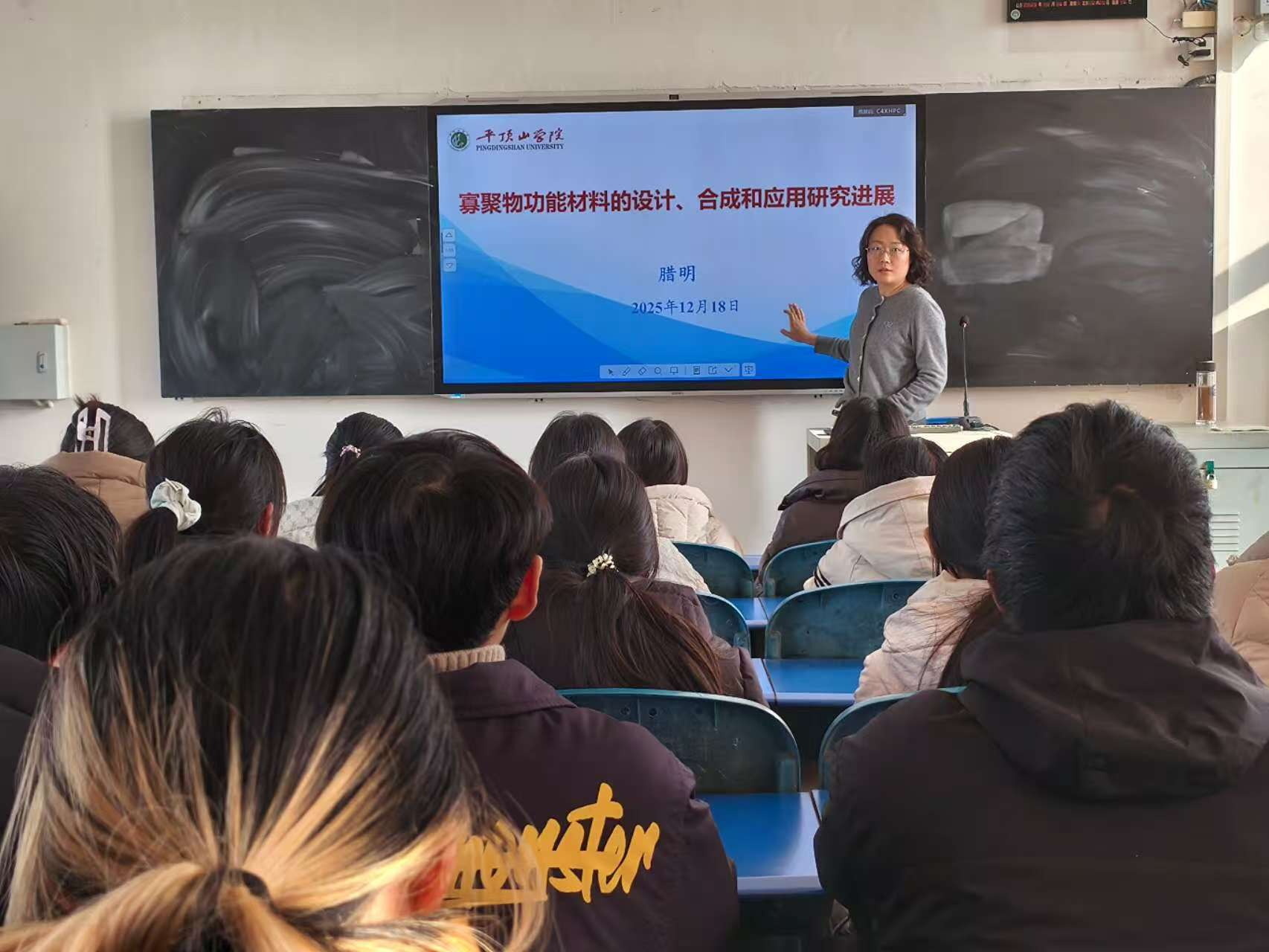 2025年12月18日下午2时,beats365中文官网腊明博士在4403教室举办学术讲座,报告题目为《寡聚物功能材料的设计、合成和应用研究进展》,公司25、24和23级化学专业同学参加了此次学术活动。腊老师以“什么是寡聚物?”为引,介绍了寡聚物的定义、优点、应用前沿领域。围绕此次报告主题,详细阐述了寡聚物功能材料的研究背景、基于AI的寡聚物分子设计策略、寡聚物功能材料的研究流程,并介绍了国内外相关研究机构的最新研究成果。最后,腊老师介绍了从事寡聚物功能材料研究的国内科研机构,并鼓励大家学好专业知识,为继续深造打下坚实基础。通过此次活动,拓宽了员工的视野,激发了员工对相关领域的学习与科研兴趣。