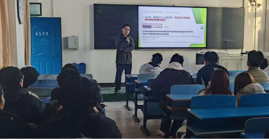 11月27日,beats365中文官网齐光博士在4103教室举办学术讲座,报告题目为《生态位从个体到物种的尺度推绎》,公司24、25级环境生态工程专业同学聆听了报告。