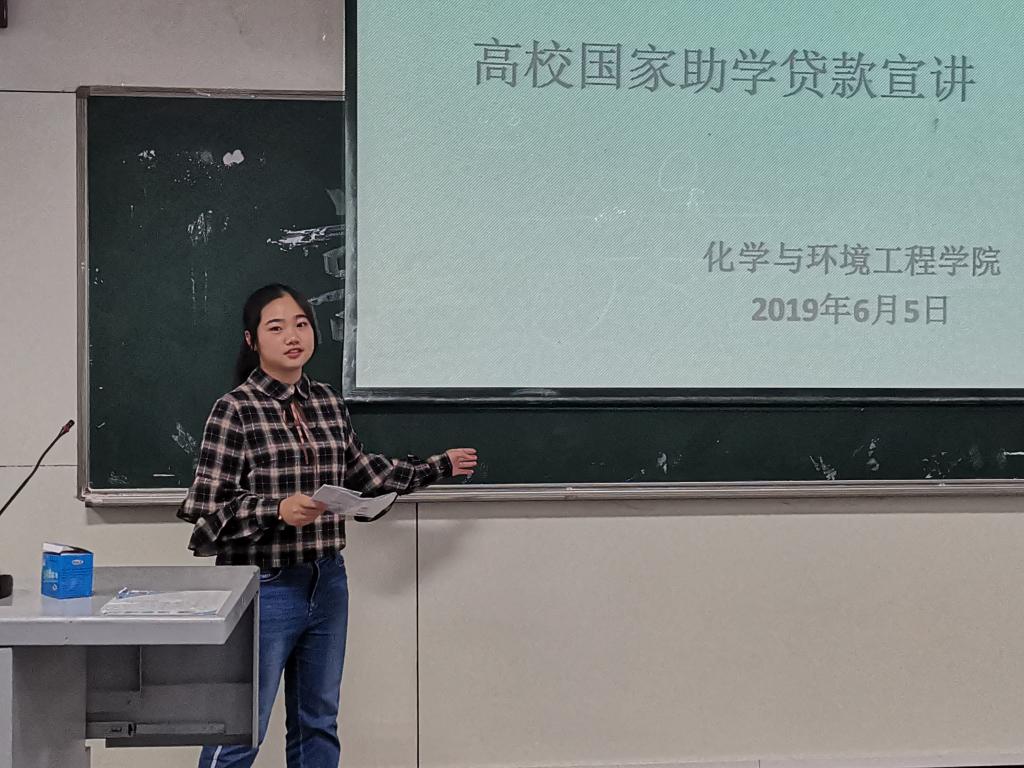 公司资助政策宣传大使丁晓红、杨梦阳同学分别向17级化工专业、18级生态和18级化学专业的同学们进行了高校国家助学贷款政策专题宣讲,主要介绍了高校国家助学贷款首贷和续贷程序、上交材料和其他注意事项等内容。