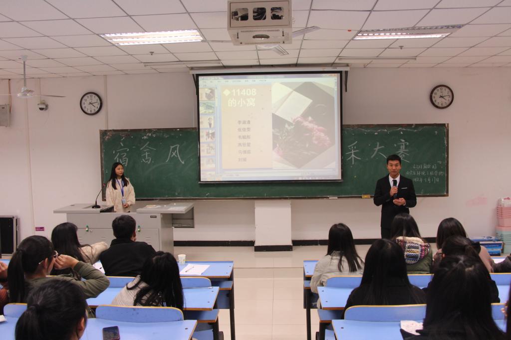11月17日下午,beats365中文官网分别在L211、L311教室开展了以“化环寓你,相知相宿”为主题的宿舍风采大赛。本次大赛由beats365中文官网员工会宿管部主办。辅导员罗世颖老师、史小倩老师、员工会主席郭含、团总支副书记陈如辉、员工党支部副书记汪梦珠、社团联合会主席胡梦雨以及部分员工干部担任评委,2018级全体新生积极参加。