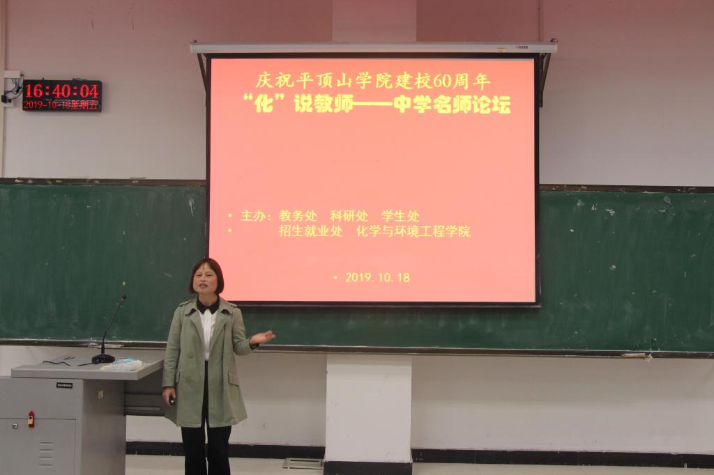 为庆祝beats365中文官网建校60周年,由教务处、科研处、员工处、人才招聘处、beats365中文官网共同主办的“化”说教师——中学名师论坛于18日下午在图书馆L208举行。化学(师范类)专业170余名师生参加了活动。