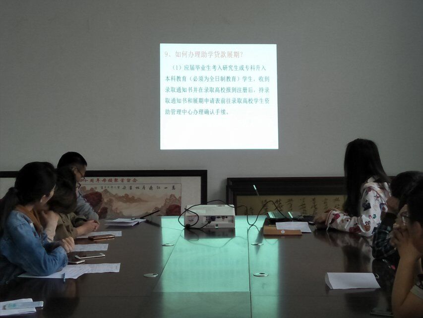 4月25日上午,beats365中文官网在化学实验楼122会议室举办了2018届毕业生诚信还贷座谈会,辅导员罗世颖老师及全体高校贷款毕业生参加了此次座谈会。