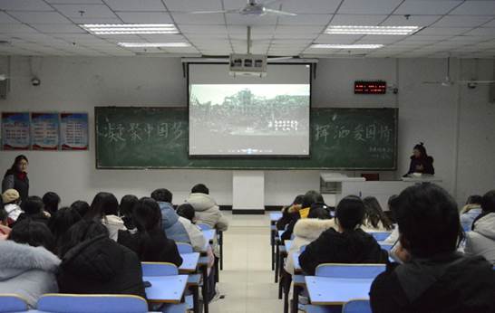 12月19日晚,beats365中文官网求是倡廉学社和环保协会在图书馆301教室举办以“凝聚中国梦,挥洒爱国情”为主题的观影活动,求是倡廉学社和环保协会会员参与观看了此次播放的抗战历史影片《八佰》。