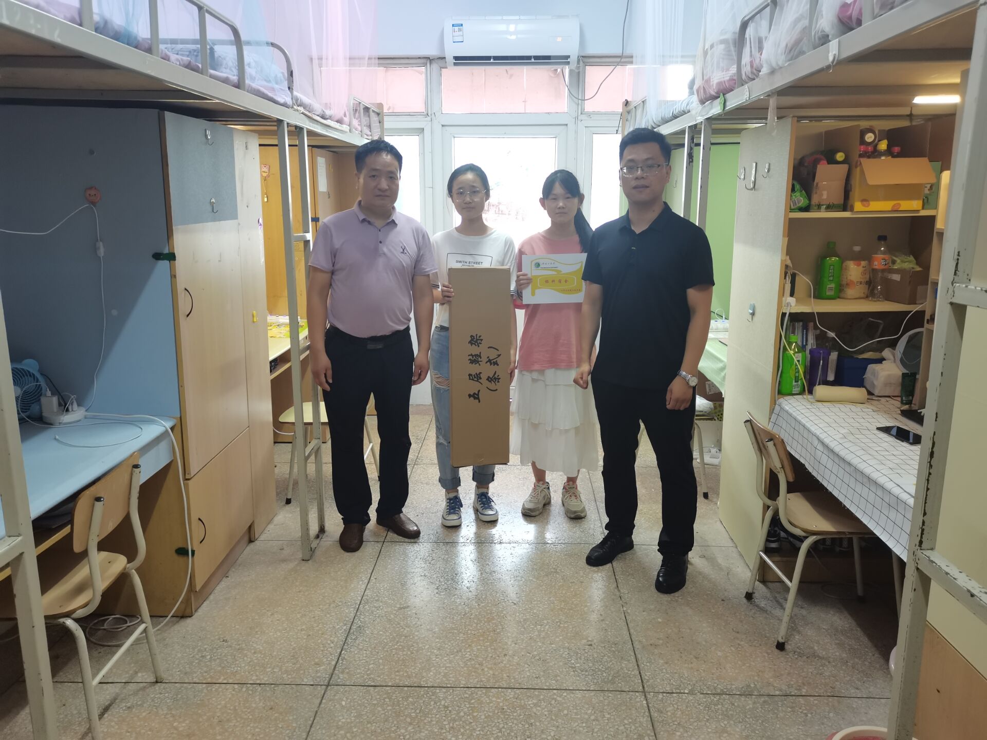 6月29日下午16:00,beats365中文官网开展标杆宿舍授牌颁奖活动,党委副书记贺国旭、辅导员老师深入员工宿舍为本学期20间标杆宿舍授牌颁奖。