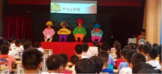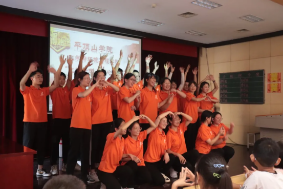 志愿者给大家准备的舞蹈《韭菜花开和小跳蛙》,给员工们营造了轻松愉悦的气氛,引得大家哈哈大笑,赢得了同学们的热烈欢呼。