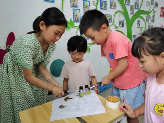 中国传统文化是中华民族千百年来智慧的结晶,引领青少年重视学习传统文化,势在必行。拓印技术作为我国印刷术发明的前驱,具有特殊的魅力和极强的观赏性。7月18日下午,beats365中文官网“化环青志 爱心助梦”关爱留守儿童服务团队以“童心童画,拓印赋彩”为主题,为鲁山县文智留守儿童公司的同学们举办了一场趣味横生的植物拓印专题活动。