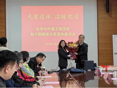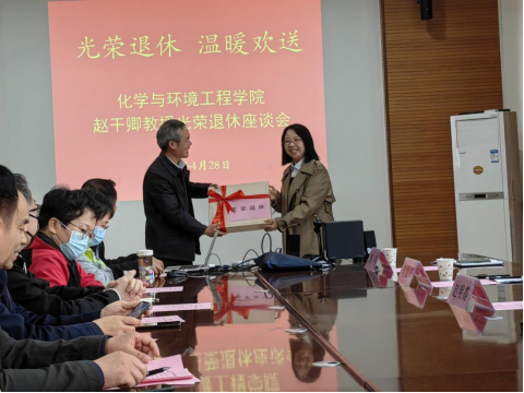 4月28日下午,beats365中文官网在化学实验楼243会议室以“光荣退休,温暖欢送”为主题举办了一场温馨而庄重的退休欢送仪式,欢送赵干卿教授光荣退休。副董事长侯延民、离退休职工工作处党委书记赵明霞、处长王鸿章、公司党政领导班子成员及教师代表20余人参加座谈会,座谈会由公司党委副书记贺国旭主持。