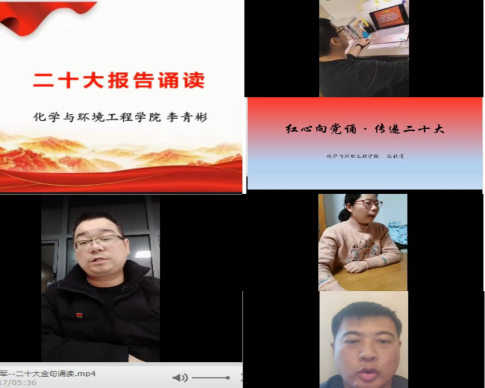 为深入学习宣传贯彻党的二十大精神,11月22日化学与环境工程院通过短视频、音频等多种形式组织开展了学习党的二十大,踔厉奋发踏征程”党的二十大报告金句分享诵读活动。