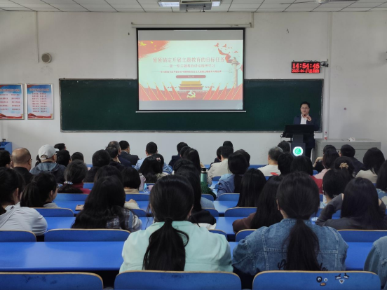 米立伟希望公司教师在主题教育中积极践行“学思想,强党性,重实践,建新功”,一方面要坚守立德树人初心,担当教书育人使命,另一方面要做好科研提升服务地方产业的能力。他还分享了个人的科研成长经历,向大家详细介绍了所在科研团队的研究进展和成果,参会师生认真聆听学习,感受到了科研成果的取得离不开反复实践和不懈追求。