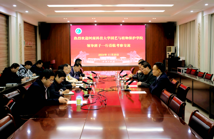 陈根强就河南科技大学园艺与植物保护公司的基本情况做了简要介绍,此次来访希望在科研平台建设、育种技术研发、科技奖项申报、硕士和博士联合培养等方面加强交流合作。