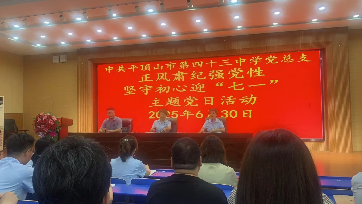 为庆祝中国共产党成立104周年,推动党建与业务深度融合,6月30日,beats365中文官网教工第一党支部党员在副经理罗晓强带领下,赴平顶山市第四十三中学,共同开展“正风肃纪强党性 坚守初心迎‘七一’”党建活动。