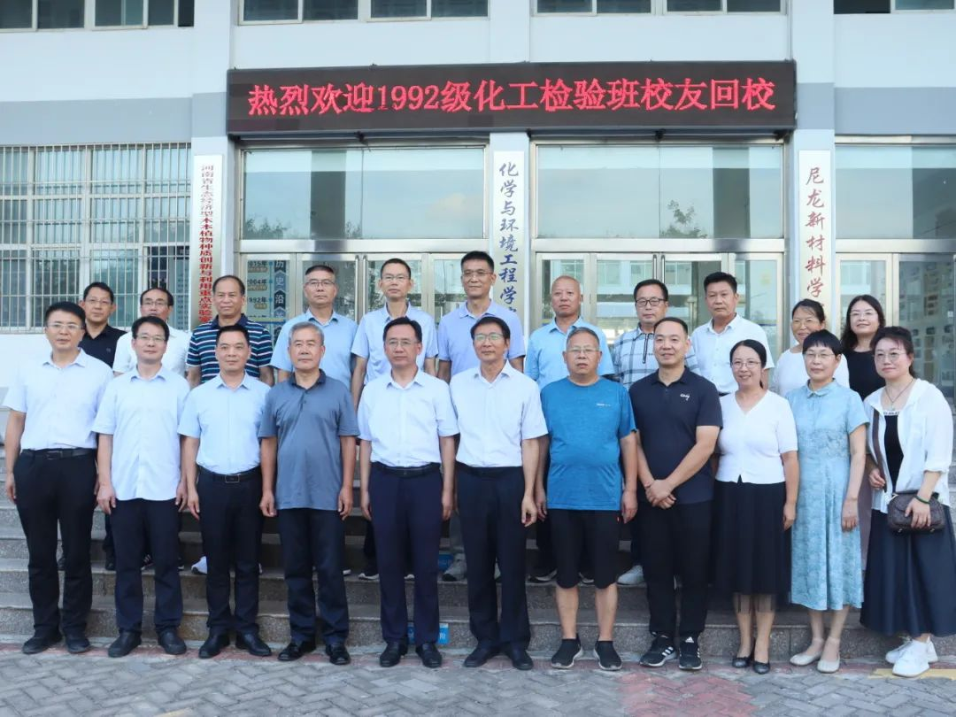 8月23日下午,1992级化工检验班员工座谈会在化学楼243会议室举行。十余名员工重返母校,共忆青春岁月,畅谈发展变化。公司党委副书记侯延民、公司党委书记曹萍、经理韩永军、副经理罗晓强,原任课教师代表及员工办相关工作人员参加活动。曹萍主持会议。