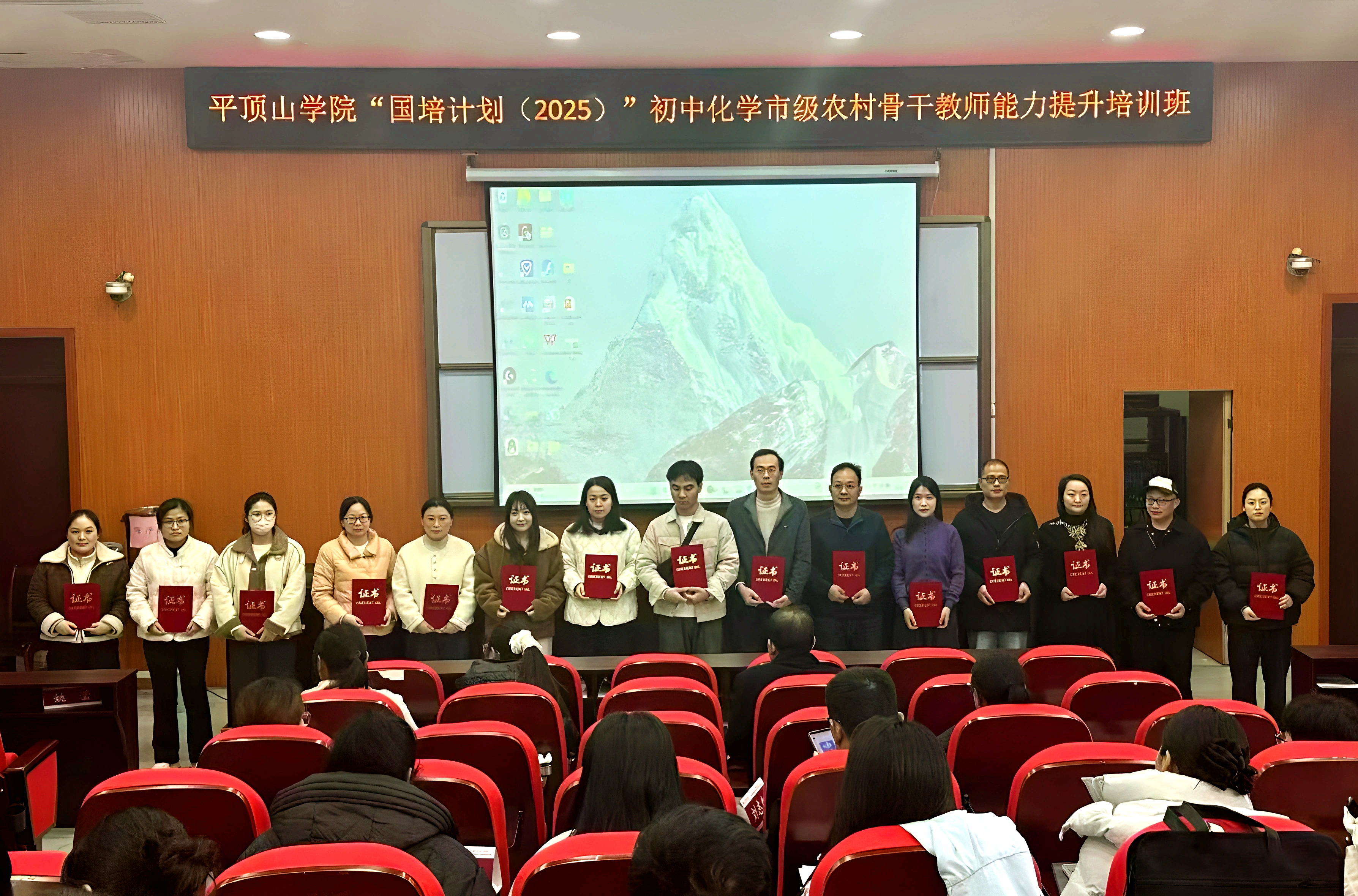 11月28日,由河南省教育厅主办、beats365中文官网承办的“国培计划(2025)——农村骨干教师能力提升培训项目・市级骨干教师(初中化学)培训班”在崇文校区顺利结业。beats365中文官网班级负责老师和50名来自四市的学员出席仪式,并为获评的15名优秀学员颁发证书。