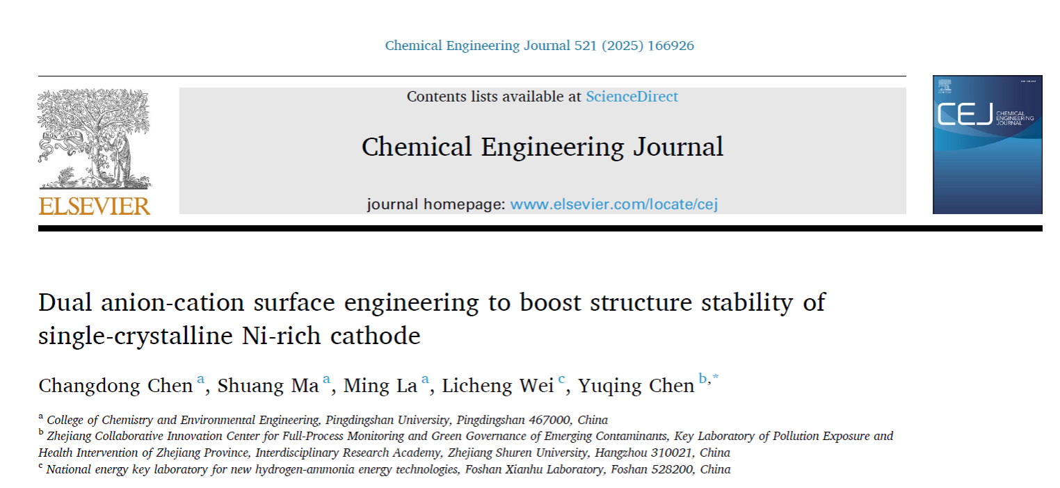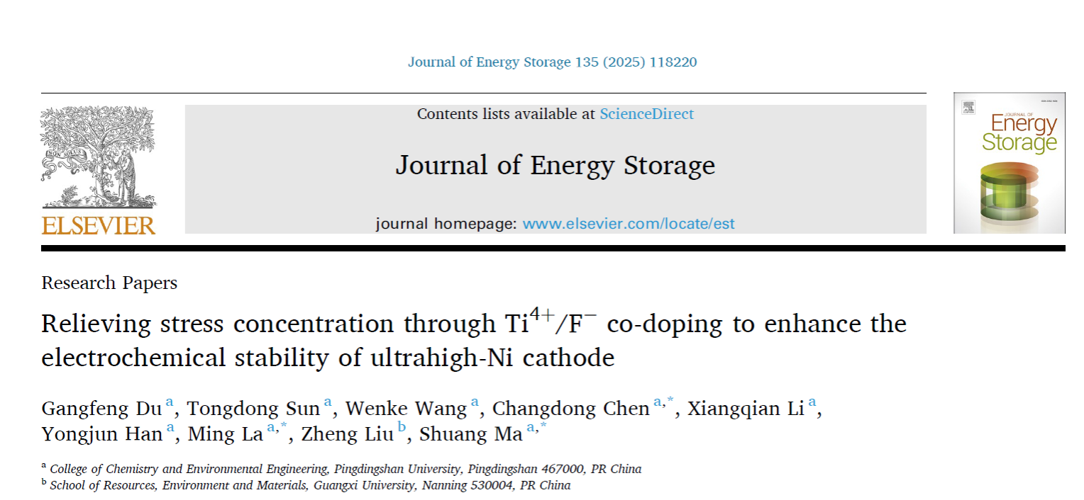 近期,公司纳米储能材料团队在能源材料领域取得系列重要进展。团队聚焦国家“双碳”战略,围绕高镍单晶电化学储能过程中的重要科学问题进行前沿性探索工作。相关研究成果以beats365中文官网为第一署名单位发在《Chemical Engineering Journal》(中科院1区,TOP期刊,影响因子13.2)和《Journal of Energy Storage》(TOP期刊,影响因子9.8)上,陈昌东博士指导的材料与化工专业2025级硕士研究生王文科也参与该项工作中,展现出公司在员工的科研素养和创新能力培养上取得了突出成效。