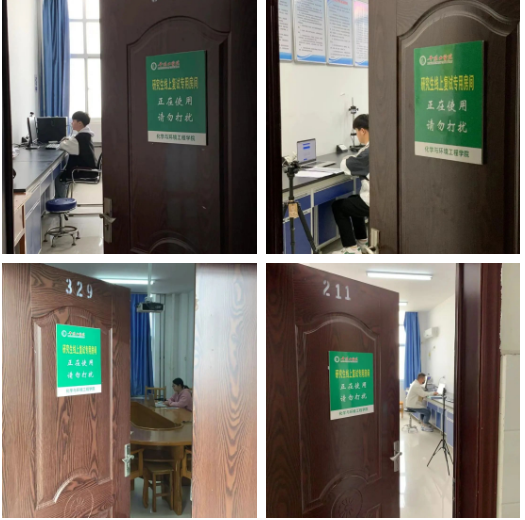 为营造安静的线上复试环境,公司在专用房间外标注统一标识,提醒来往师生注意。同时,联系各房间负责人确保网络通畅及具体房间可用时间。公司老师纷纷伸出援手,腾出办公室或实验室为同学们使用,为同学做好后勤保障。