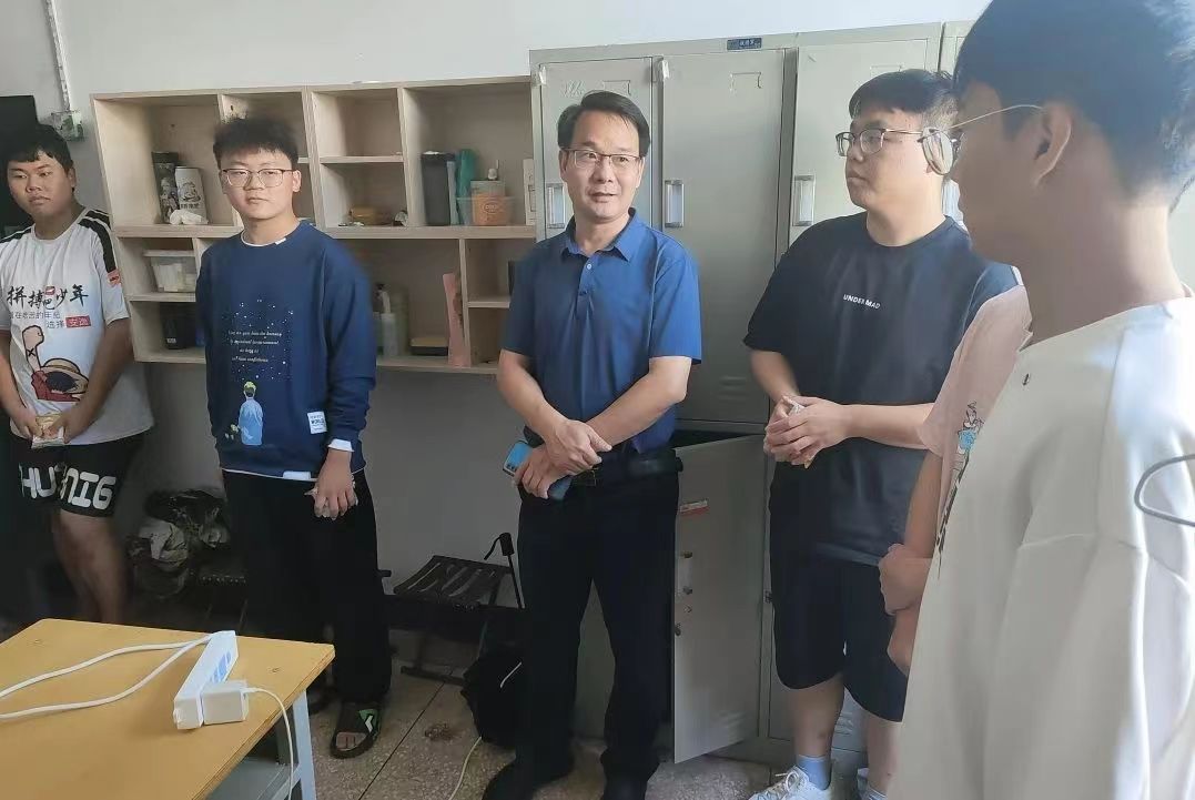 一轮明月,千里共赏;一份月饼,情暖中秋。在中秋国庆双节来临之际,为了让留校员工感受到家的温暖,度过一个幸福愉快的假期,9月30日下午,beats365中文官网党委副书记贺国旭、副经理韩永军和2023级辅导员来到大一新生宿舍看望慰问留校员工。