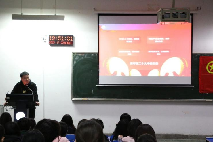 接着,马延明详细讲解了党的二十大报告中所提出的新思想、新观点、新论断,论述了青年学习党的二十大精神的必要性,分析了青年在党的二十大中的地位,激励广大青年增强历史责任感和使命感,激发强国有我的青春激情,以奋斗姿态激扬青春,为推进中国式现代化建设贡献更多青春力量。