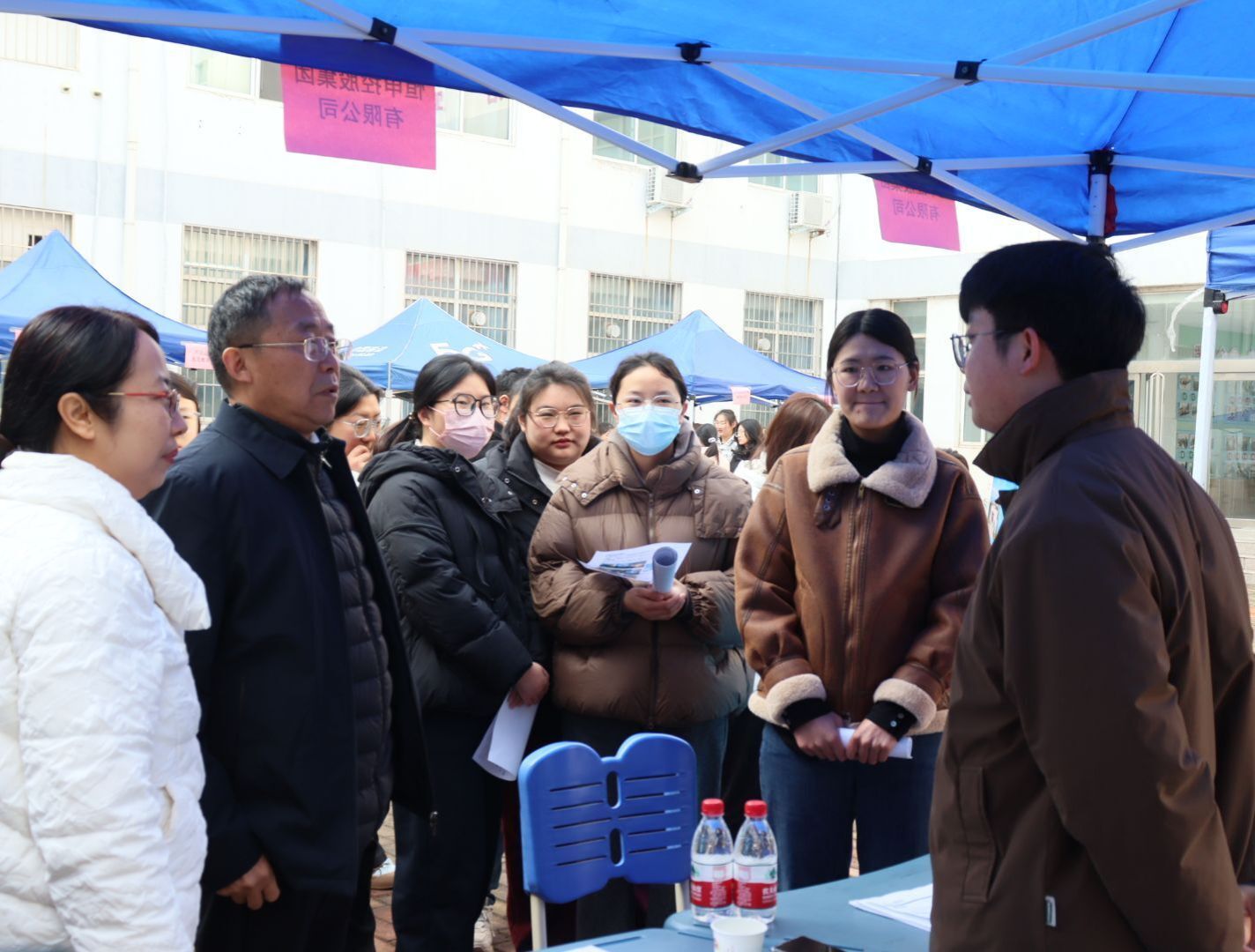 招聘会期间,副董事长于长立带领招生处处长孙延彬、公司党政负责人走访了各个企业招聘展位,与参会企业和毕业生进行了面对面的沟通交流。于董事长一行了解用人单位人才需求意向、毕业生就业表现等情况,认真听取了企业代表对人才的需求和反馈,为进一步优化人才培养方案提供了宝贵的建议。在与毕业生的交流中,于董事长鼓励员工要保持积极向上的心态,勇于面对就业市场的挑战,尽早确定就业意向。