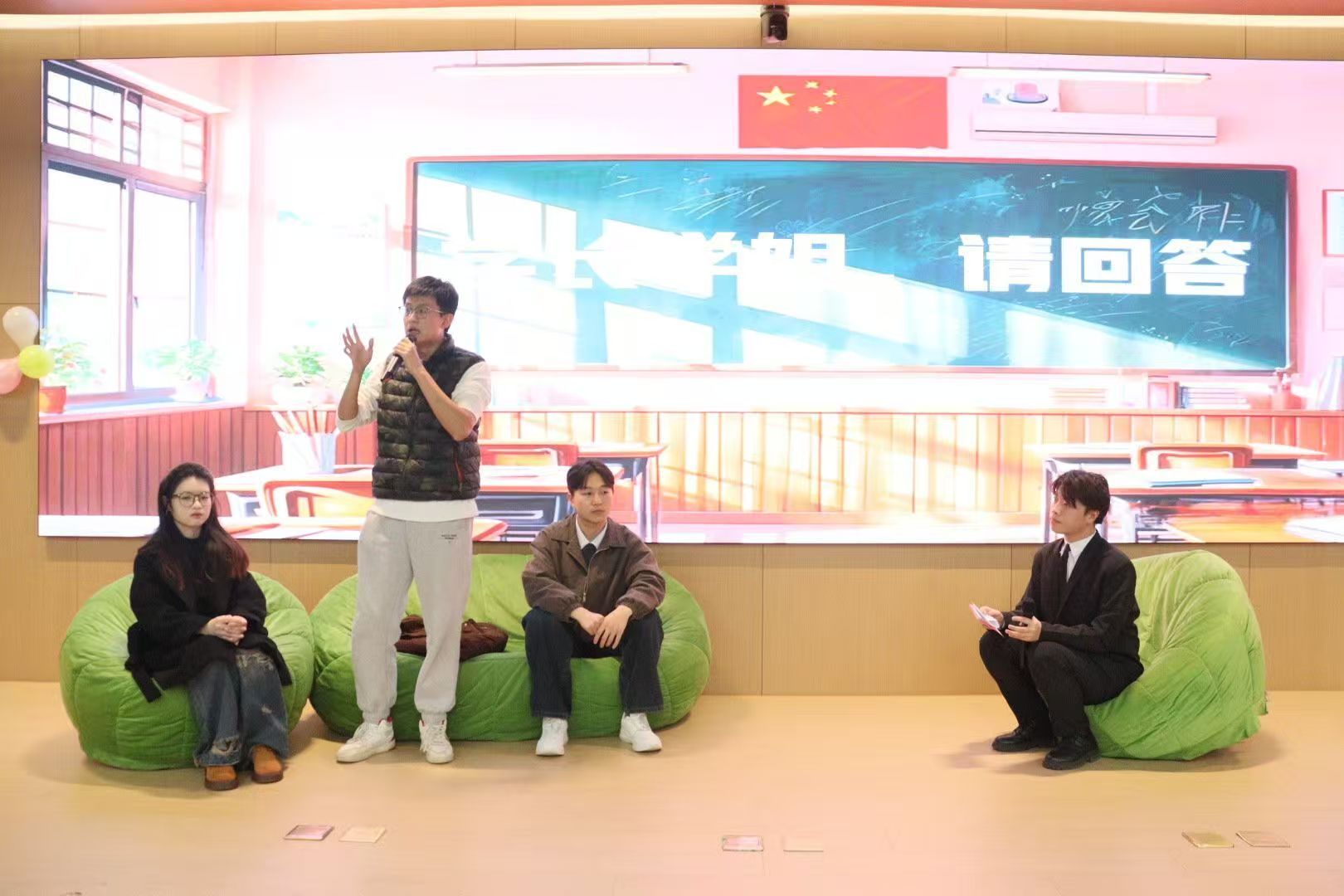 在互动答疑环节,同学们踊跃提问,问题涵盖如何平衡备赛与学业、初期如何迈出第一步等,三位分享者均给予了细致而诚恳的解答。随后进行的有奖问答换家更是将现场气氛推向了高潮。同学们纷纷表示,分享内容“干货满满”,不仅消除了对参赛的陌生感与畏惧感,更获得了清晰的备赛路径和宝贵的实战经验,对未来参与创新创业活动充满了信心与期待。
