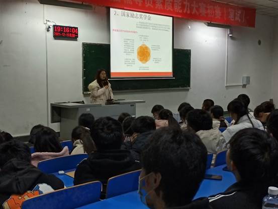 石培琳老师首先对国家助学金、国家奖学金、国家励志奖学金、国家助学贷款、勤工助学、退役复学资助政策等高校家庭经济困难员工资助政策体系的具体内容进行了全面解读。同时详细介绍了公司、公司家庭经济困难员工的认定标准、国家奖助学金评审细则、勤工助学申请流程、助学贷款的申请与发放办法。紧接着,从国家资助政策发展的历史和资助的目的和意义的角度开始,为同学们做了详细的解读,加深了同学们对国家资助政策的了解。最后,她提醒同学们在收到奖助学金之后,要谨防电信诈骗,保护好个人财产安全。并嘱咐大家一定要合理使用奖助学金,避免铺张浪,自立自强、珍惜机会、做好表率,恪守诚实守信的良好品德。
